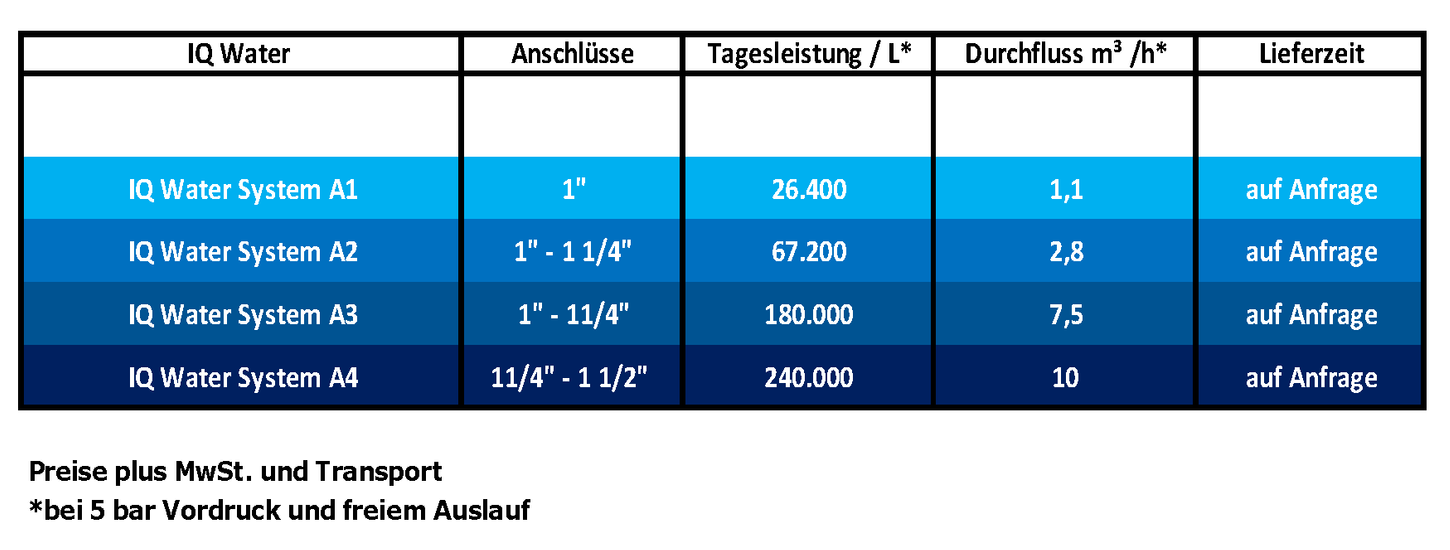 IQ-Water device sizes